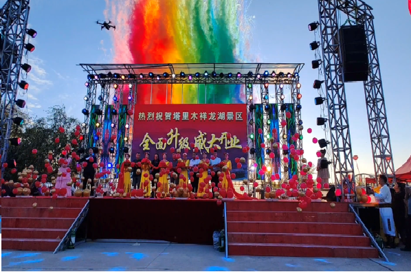 活动当天景区邀请新疆流行作词家歌手艾力·楼兰等网红助力景区升级开业。“这次来到祥龙湖景区,感受到了当地群众的热情和对我们节目的喜爱,这里给我们留下了很深的印象,很高兴我们的歌曲能给大家带来欢乐。”受邀参加演出活动的歌手说。