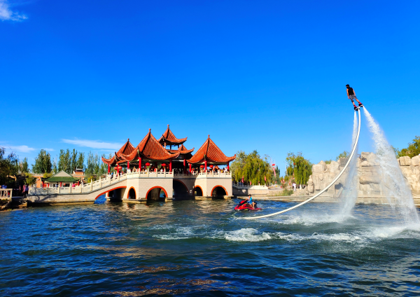 据悉,除了歌舞表演外,景区还组织了水上飞人、水上大冲关、游湖飞艇等一系列丰富的活动,在展现祥龙湖景区独特风俗风貌的同时,也为各地的游客奉献一段深刻精彩的旅程。