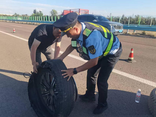 7月24日,在S12线K52+800米处,一辆轿车突然爆胎,车主手足无措之际,伊宁执法大队执法人员及时伸出援手,成功化解危机,保障了道路的畅通和车主的安全。