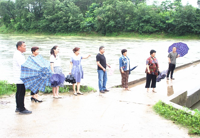 当天上午,汝南县时而大雨倾盆、时而细雨朦胧,连续不间断降雨让古塔街道防汛工作面临了前所未有的压力,同时也揪紧了县人大代表的心。为监督街道防汛工作开展,街道人大工委及时组织辖区县人大代表冒雨到防汛一线视察监督防汛工作。代表们首先来到了汝河上游东丁营半河桥,代表们看到湍急的流水打着旋涡冲击在半河桥上,大量的水草在流水的冲击下不断缠绕在桥桩上,让半河桥承受着较大压力。县人大代表还视察了街道大面积内涝情况,在刘屯社区南部,代表们看到,由于连续降雨,积水淹没了许多田间庄稼。