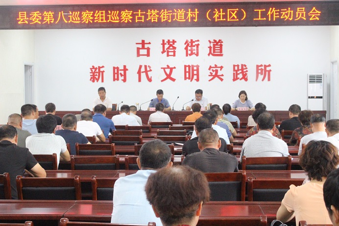 清风网讯(汝南县古塔街道办事处: 王付云)8月20日,汝南古塔街道召开了县委第八巡察组巡察古塔街道村社区工作动员会,标志着县委对街道4个村社区巡察工作正式进入“工作模式”。