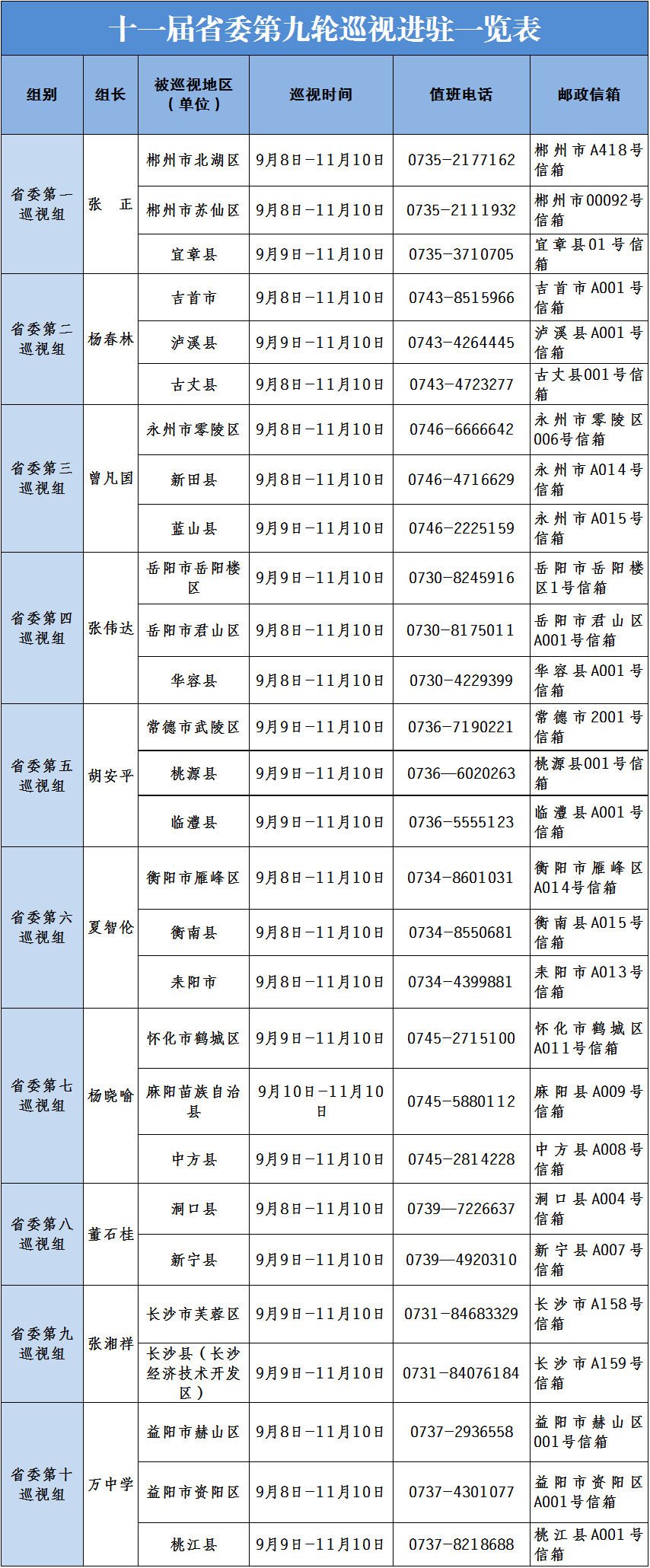 近日,十一届湖南省委第九轮巡视10个巡视组完成进驻。经湖南省委批准,本轮巡视集中对长沙市芙蓉区等28个县市区开展常规巡视。