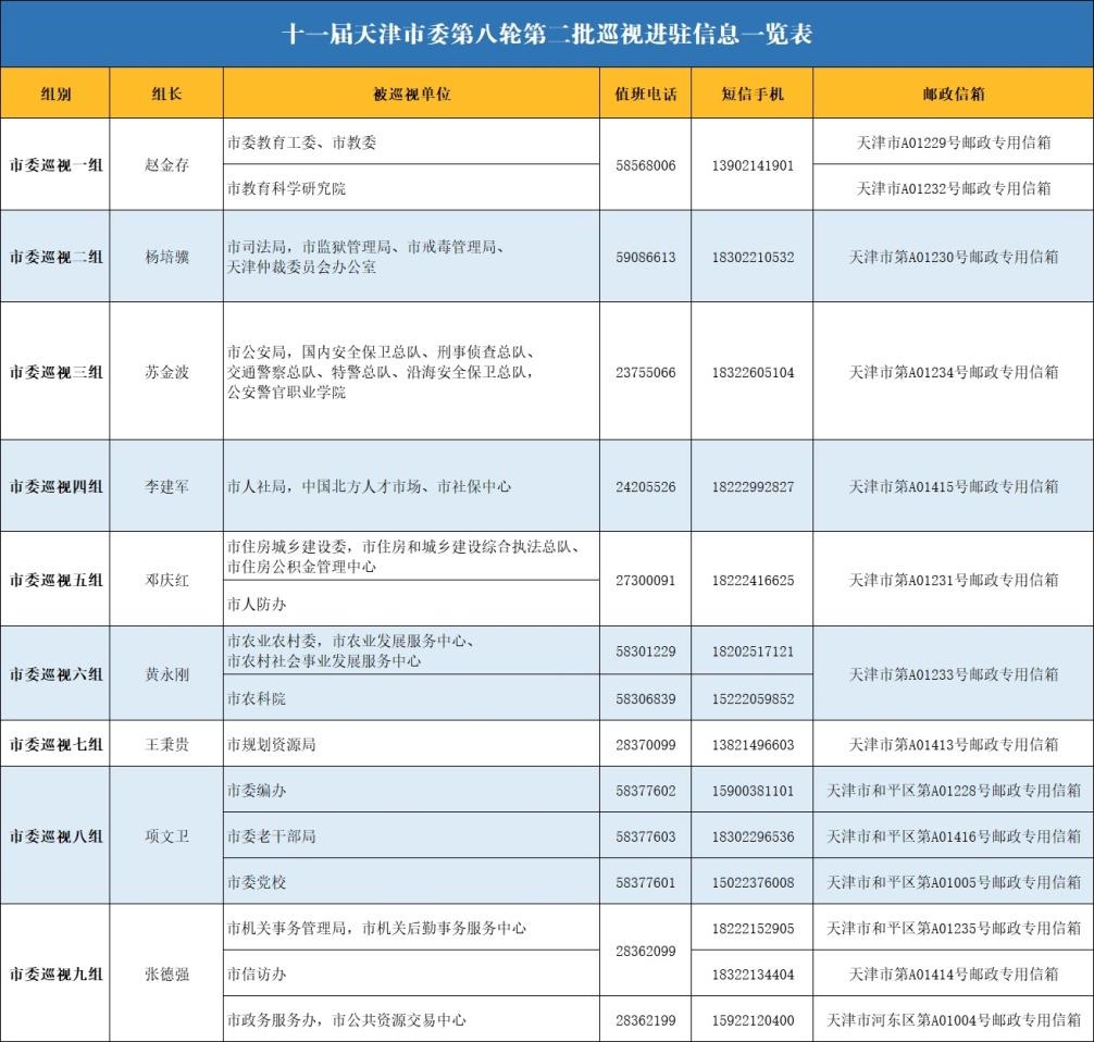 日前,十一届天津市委第八轮第二批巡视进驻完成,9个市委巡视组对16个市级单位党组织及其所属的17个局级单位党组织开展常规巡视。