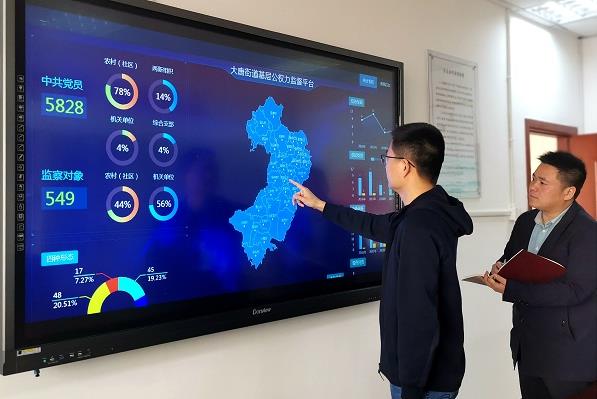 着眼信息化助力基层纪检监察工作,浙江省诸暨市纪委监委开发联通委机关与派驻机构、乡镇纪委监察办的“三位一体”基层公权力监督平台。图为大唐街道纪工委监察办工作人员通过系统内设的查询、分析功能,对近期信访情况进行综合研判。冯佳丽 摄