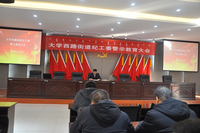 12月8日,赛罕区大学西路街道办事处召开了全体党员干部警示教育大会。大会由街道纪工委组织,会上,纪工委书记范燕军以辖区身边案例为题材,通过剖析案例成因,产生问题根源,举一反三,深入浅出的教育党员干部要严守“四大纪律,八项规定”,要依法行使权利,不滥用职权,要廉洁奉公,管好配偶子女和身边工作人员。要公道正派,不任人唯亲,营私舞弊,时刻紧绷廉政这根弦不放松,树立以服务人民为中心的政治理念,守住做人做事的底线,做合格党员干部。(赛罕区纪委监委宣传部)