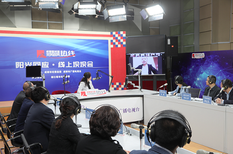 聚焦民生诉求反映,成都市纪委监委联合成都市广播电视台策划推出“阳光回应·线上坝坝会”融媒体直播活动。图为近日,场外群众代表通过视频连线提问,相关街道(乡镇)负责人现场回复。苏尧 摄