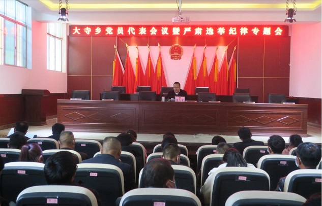 在大寺乡党员代表会议暨严肃选举纪律专题会议上,大寺乡党委书记曾光富同志强调:一是要绷紧纪律之弦。纪律是做好工作的坚强保障,将纪律挺在前面,是上级的要求,也是工作的需要,要严明换届选举纪律,持续发扬以往换届选举工作中的好作风,确保换届工作有序进行。二是要严格落实选举纪律要求。根据中央、省市县委相关选举纪律要求,认真领会精神实质,严格遵守换届“九严禁”相关规定,知敬畏、明底线、守规矩。三是要坚决维护风清气正选举环境。选举纪律是一条不可触碰的“高压线”,参会代表、与会人员要共同守护“钢规铁律”,合力营造和维护风清气正的选举工作氛围。