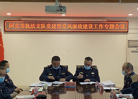 清风网讯(通讯员:何剑)2021年3月26日,阿克苏执法支队召开党建暨党风廉政建设工作专题会议。会议由支队党委委员副支队长主持,支队党委领导班子成员、各执法大队党政领导和机关科室领导参加会议。