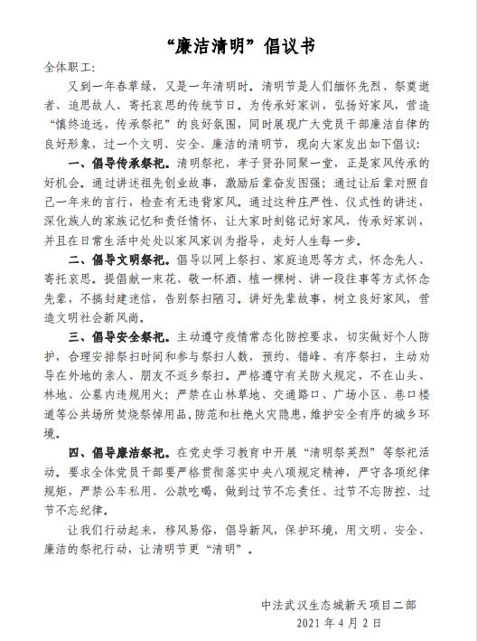 中建三局二公司新天二部项目组织 “清明风至 清廉随行”廉洁祭扫活动