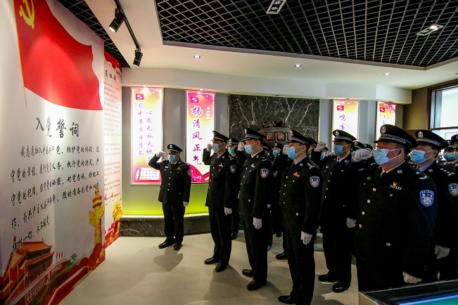 最后,处长李东生带领全体民警重温入党誓词,回顾入党时的庄严承诺,时刻提醒着自己所肩负的神圣使命和责任,不断强化对党的忠诚及对共产主义事业的不懈追求。