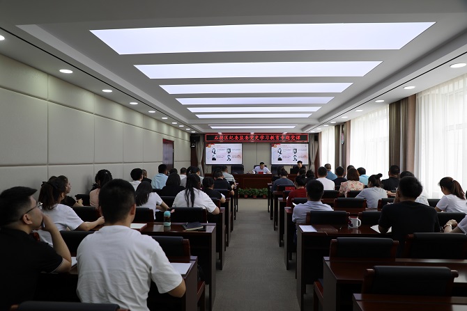近日,石拐区纪委监委召开党史学习教育专题党课,全体纪检监察干部、各派驻纪检监察组、巡察办、巡察组全体人员,苏木镇街道纪(工)委书记到会参加。