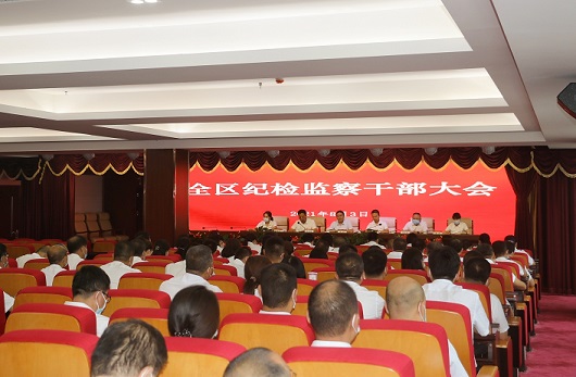 会议由纪委副书记、监委副主任齐全平主持。区委常委、纪委书记、监委代主任闫义,纪委副书记、监委副主任云宏君,区纪委新任领导班子成员及全体纪检监察干部参加了会议。