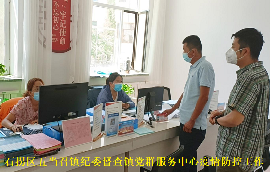 “外来人员的测温、扫码、登记有专人负责吗?防控措施是如何落实的……”“最近有没有发热病人?新冠疫苗接种任务完成了多少?”这是石拐区五当召镇纪委督查镇党群服务中心疫情防控工作落实情况时的场景。