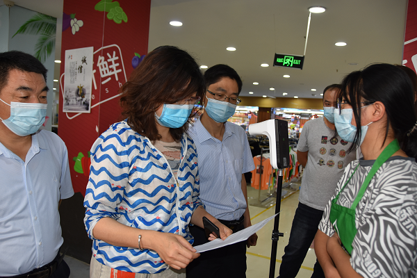 (图一8月13日,疫情防控督查组对客都生活超市疫情防控工作进行督查)