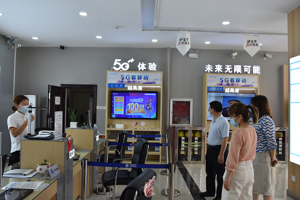 (图三8月13日,疫情防控督查组对移动营业厅“一米线”设置情况进行督查)