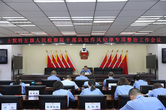 为进一步落实全面从严治党要求,加强党的领导和监督,切实整治干部队伍中存在的作风不实、纪律不严等问题,近日,土左旗纪委监委派驻检察院纪检监察组组织驻在单位召开干部队伍作风纪律专项整治工作会议,会议由党组成员、派驻检察院纪检监察组组长李靖主持,院领导班子成员及全体干警参会。