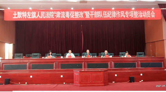 为进一步肃清违纪违法案件的流毒影响,以强有力的举措强化作风纪律建设,提高法院干警规范履责尽职担当的能力,9月17日,旗人民法院召开 “肃流毒、促整改”暨干部队伍纪律作风专项整治动员会。旗纪委监委派驻旗人民法院纪检监察组组长石胜利作廉政教育。