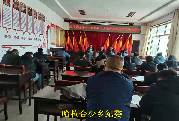 会上,政府乡长聂向荣作了动员讲话,要求一定要以高度的政治责任和政治热情确保圆满完成本次县乡人大政府换届选举工作;强调要严格选举程序,严明选举纪律,依法、依纪、依规搞好换届选举各阶段的工作;乡人大主席云霄宣读了《哈拉合少乡人大政府换届选举工作实施方案》;县人大常委会副主任、换届选举第四指导组组长李璐进行了指导和强调讲话。为了进一步严肃换届纪律,加强换届风气监督,乡纪委配合乡党委制定并出台了“党委主体责任清单”、“党委书记第一责任人责任清单”,“纪检监察责任清单”,“换届领导小组责任清单”、“各村党支部书记责任清单”,明确了主体责任人和具体责任人。乡纪委书记冯海宣布了选举“十个严禁”、“十个一律”的纪律,并与参会人员签订了《哈拉合少乡县乡人大、政府换届选举纪律承诺书》,乡纪委还制定了分阶段巡回督查检查、查办违反换届纪律的问题实施意见,设立了举报信箱和举报电话,全程跟进本次人大、政府换届选举的监督。发放了《换届选举公告》和《致全体选民的公开信》,充分扩大选举的宣传度,动员广大群众积极参与选举并监督。
