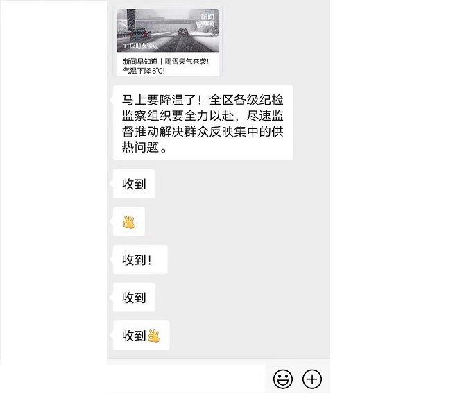 “在推动解决供热矛盾问题方面,区纪委监委的监督非常及时到位,这份监督既饱含着对群众利益的维护和关爱,也包含着对我们工作的鞭策和期待,我们将坚持人民至上,强化责任担当,督促有关单位履行好供热主体责任,及时向纪委监委反馈相关工作整改进展情况,切实保障人民群众安全温暖过冬。”区住房和城乡建设局相关负责人表示。