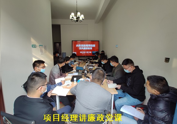 三是上廉政党课,造廉洁氛围。11月15日,项目经理苏进龙给大家上了一堂《坚守廉洁心 杜绝“微腐败”》的廉政党课,强调施工企业党风廉政建设的重要性,告诫大家“勿以善小而不为,勿以恶小而为之”,要严格遵守公司、分公司、经理部各项管理制度,在全项目营造良好的廉洁氛围。