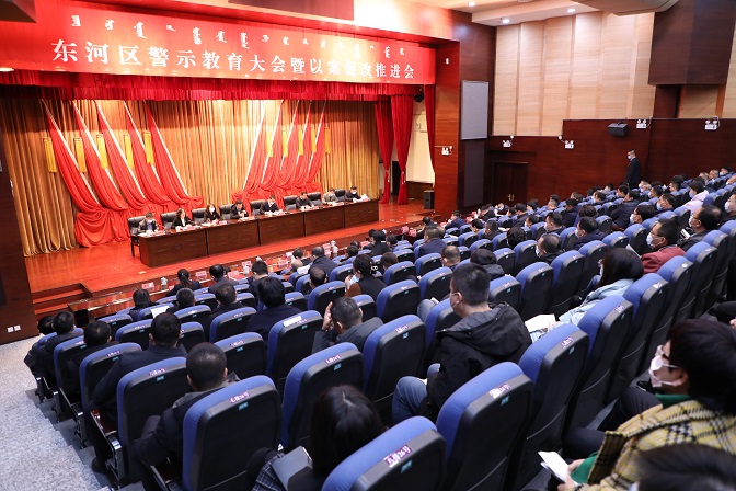 清风网讯(东河区纪委监委:李忠义)12月2日,内蒙古包头市东河区召开警示教育大会暨以案促改推进会。市委常委、区委书记杨二喜讲话。区委副书记、政法委书记董存瑞主持会议。区委常委、纪委书记、监委主任赵利珍作典型案例剖析报告。