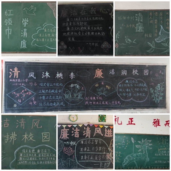 一年级有一批学生在11月份刚刚戴上红领巾,班主任和入队了的孩子们一起设计了以“红领巾学清廉”为主题的黑板报,充分拓展清廉文化宣传阵地,开展立体化宣教,让孩子们从小“知清廉 学清廉”,树立清廉意识。