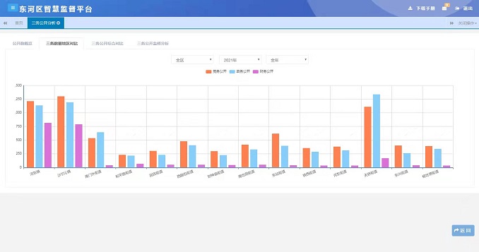 “三务”公开工作对于净化基层政治生态、化解基层信访矛盾具有重要意义和作用。区纪委监委以“三务”公开工作为抓手,在全区范围内组织开展全覆盖“线下”监督检查,“线上”通过“智慧监督平台”进行比对分析,严肃整治不落实、不公开、不及时问题,对5家存在问题单位进行全区通报,对相关责任领导及工作人员进行追责问责,通过强化督查问责,倒逼基层干部提振干事创业精气神。截至目前,通过“智慧监督平台”录入、发布“三务”公开数据59667条,受理群众留言391条,事项办结率与群众满意率均为100%。与此同时,以解决突出问题为突破口,针对干部工作中存在的形式主义、官僚主义和“庸懒散浮拖”等“机关病”“作风病”开展集中整治,重点对政务服务相关部门、重点职能部门的履职情况、重点项目落实情况以及热线投诉事件的办理进度等事项开展“线上+线下”集中监督检查,“点对点”制发“一把手”督促提醒函2份、通报5期,推动整改问题9个,约谈21人,诫勉谈话3人,进一步激发全区干部锐意进取、敢于担当、积极向上的工作作风。