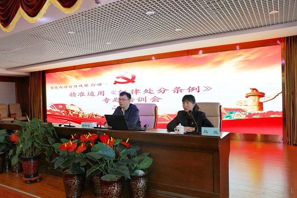 按照“苦练内功百日攻坚”行动安排,为深入贯彻落实上级纪委监委关于新时代纪检监察工作的总体部署和要求,进一步提高执纪执法水平,提升案件查办质效,12月10日下午赛罕区纪委监委举办了精准适用《纪律处分条例》专题培训会,特别邀请呼和浩特市纪委监委案件审理室审理一科科长祖吉宁同志前来授课。各镇街道纪(工)委、各派驻纪检监察组、委机关各部室全体干部参加了本次培训。