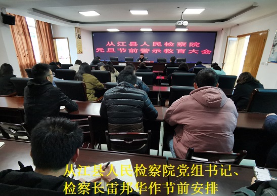 清风网讯(从江县人民检察院办公室:杨思妮)2022年元旦节将至,为持续巩固拓展落实中央八项规定精神成果,严防“四风”问题反弹回潮,确保节日期间风清气正,使广大干警过一个健康、文明、清廉的节日。12月31日下午,从江县人民检察院召开节前警示教育大会,确保干警廉洁过节、安全过节。