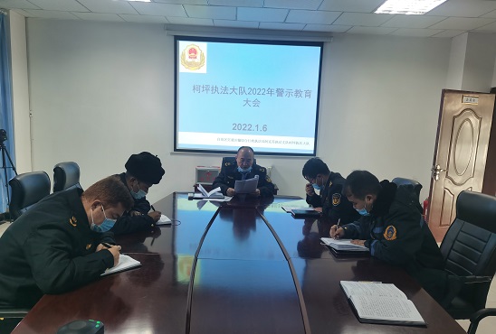 2022年1月6日,柯坪执法大队召开本年度第一期警示教育专题会议,会议传达学习了交通运输厅系统2021年违法违纪典型案例通报;由党支部书记哈斯木•买斯木同志以《为什么要加强党风廉政建设》为主要内容,为全体党员干部进行了专题授课并收看了警示教育片《警钟》“我渴望自由,阳光照到屋里我都不舍得踩”。