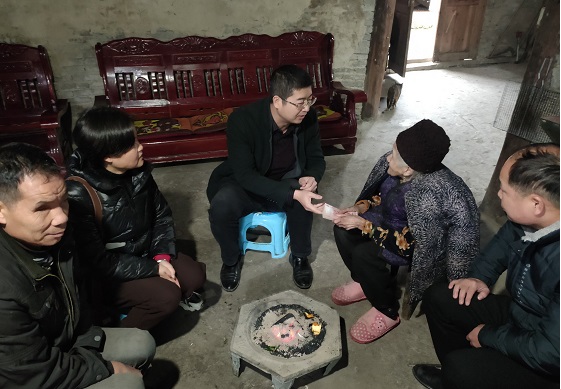 1月6日,下江镇党委副书记、镇长陈德广带队探望下江镇民族村特困供养老人石奶树环,并将下江镇纪委追回的17700元违纪民生资金现场清退给了石奶树环。
