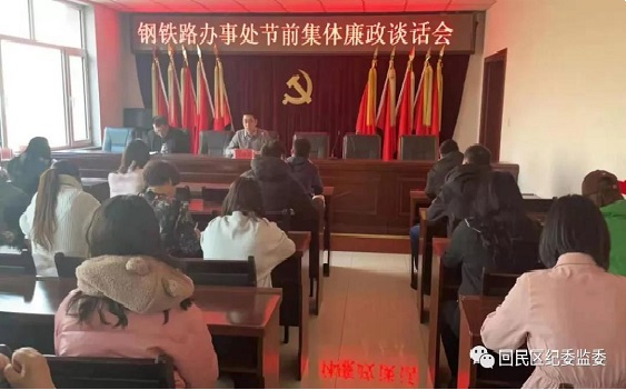 1月4日,钢铁路街道纪工委召开集体廉政谈话会议,街道各部门负责人、各社区书记主任、副书记、纪检委员参加了会议。