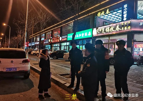 回民区纪委监委对“三禁”工作专项督查高度重视、精心安排,全体干部于夜间分组分片对各街道办事处、商户和居民区进行实地查看,详细督导各社区宣传动员、巡查摸排和包联干部轮班情况,确保“三禁”工作全覆盖、无死角,做到管控到位、落实有力。