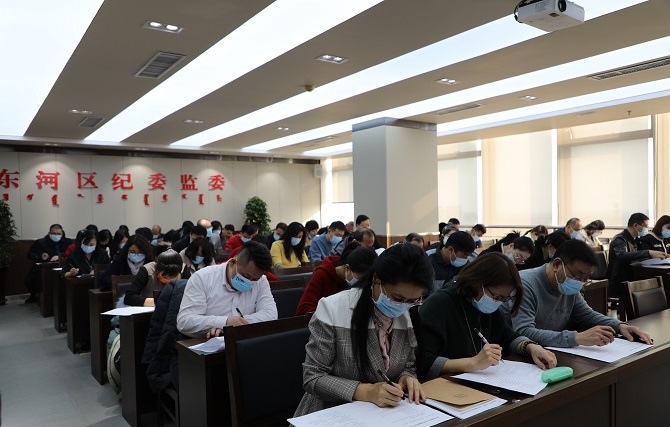 廉政谈话后,组织新提任、调任科级领导干部进行了廉政知识考试。(东河区纪委监委:王景超)