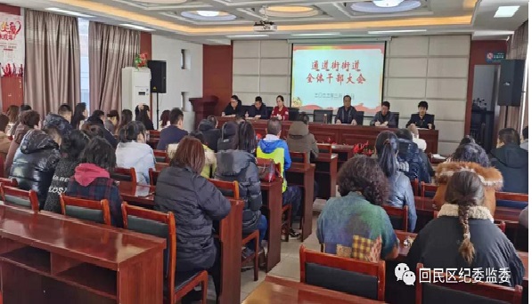 2月14日,通道街街道纪工委联合办事处召开全体干部大会。会议由办事处主任主持,街道班子成员及机关、社区全体干部参加会议。
