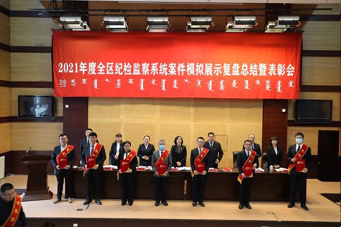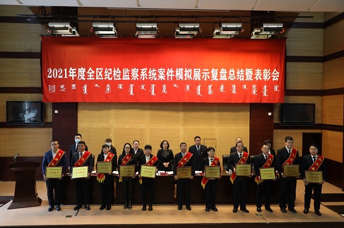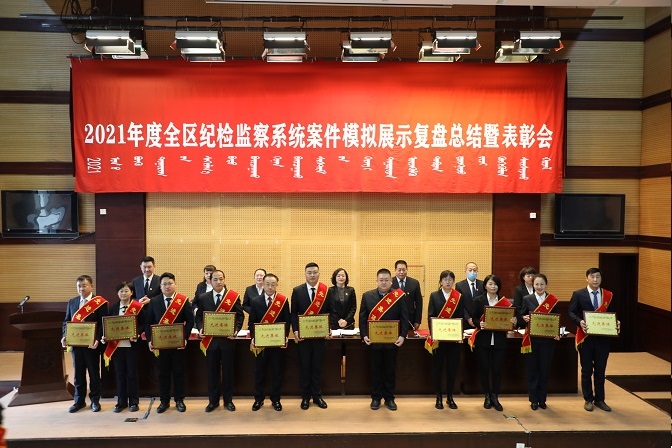 会议对2021年度全区纪检监察系统工作实绩突出和纪检监察查办案件、专项整治、信息宣传等各单项工作中涌现出的40个先进集体,以及80名工作突出、敬业奉献先进个人予以表彰。会上,观看了《打铁还需自身硬(中篇)》警示教育片,3名代表对2021年度“苦练内功百日攻坚行动”案件模拟演练进行了点评和发言,6名专案组成员对承办的专案进行了复盘总结。