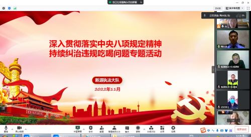 为推动干部作风建设向纵深发展,营造风清气正的干事创业氛围,近日,新源执法大队党支部以视频会议的方式开展了以“深入贯彻落实中央八项规定精神,持续纠治违规吃喝问题”为主题的学习活动。