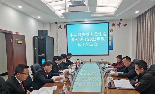 2023年2月13日,中共凤庆县人民法院党组召开2022年度民主生活会。会议由党组书记、院长黄海鸥同志主持,县委政法委副书记肖天鹏同志、第七督导组同志到会指导。