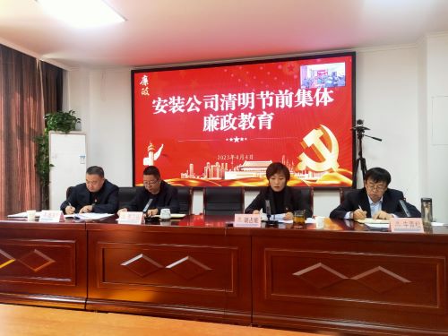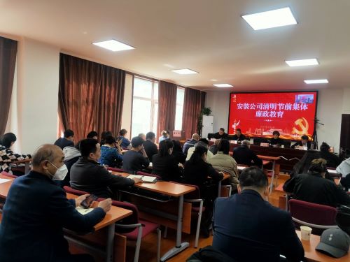 清明节将至,为切实增强全体党员干部职工廉洁从业意识,提高拒腐防变能力,教育引导广大职工知敬畏、存戒惧、守底线,严防“四风”问题反弹回潮,积极营造风清气正、健康文明的节日氛围。4月4日上午,安装公司党支部组织驻乌全体党员、公司本部人员、各项目、各分子公司负责人共计42人,在三楼会议室召开清明节前集体廉政警示教育会议,由党支部副书记胡占能主持。