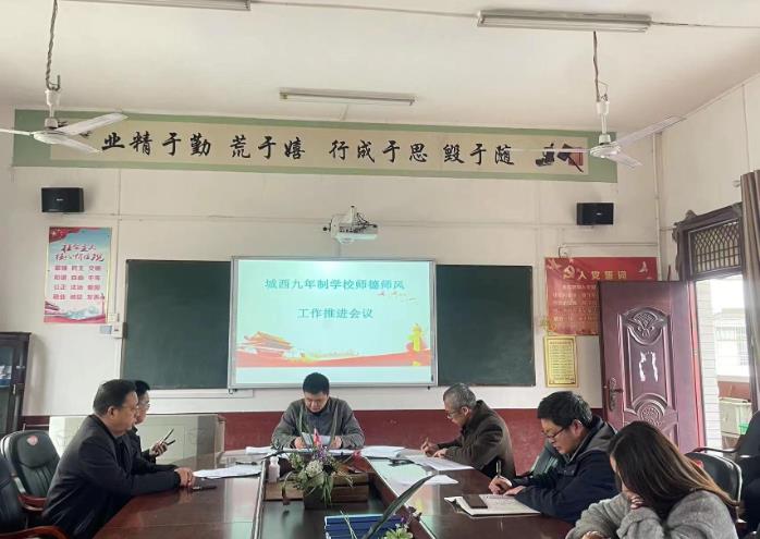 校长杨期望带领老师们学习了中共邵阳市委教育工委关于《邵阳市教育系统“明方向、立规矩、正风气、强免疫”作风建设专项活动方案》和邓元泰镇中心学校的实施方案,并就2023年第二季度学校师德师风建设工作进行了部署。政教处肖金姣主任公布了《城西九年制学校“明方向、立规矩、正风气、强免疫”作风建设专项活动实施方案》,她指出全体教师要深入学习贯彻落实党的二十大精神和习近平总书记在党的二十届一中全会上提出的“明方向、立规矩、正风气、强免疫”干部作风建设要求,通过深学习、抓落实,一个毛病一个毛病纠治,一个问题一个问题整改,进一步营造敢为、敢闯、敢干的浓厚氛围,为办好人民满意的教育提供坚强的作风保障。