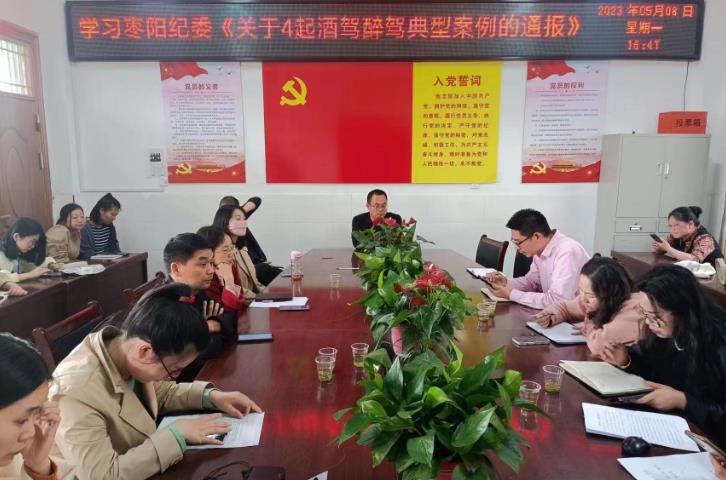 会议组织学习了枣阳市纪委《关于四起酒驾醉驾典型案例的通报》(市纪委通报【2023】第2期,通过身边的真实案例,以案说法、以案明纪,引导全体干部职工明底线、知敬畏,不断强化作风建设,切实增强纪律观念和守法意识,做到心有所畏、言有所戒、行有所止,自觉树立教育的良好形象(通讯员:刘开勇 、褚彦君)