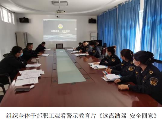 为教育引导干部职工从反面案例中吸取教训、引以为戒,杜绝麻痹思想和侥幸心理,严格遵守法律法规和各项规章制度。近日,伊宁执法大队党支部组织全体干部职工召开“以案释法、以案明纪、以案促改”警示教育大会,再次学习典型案例库中自治区交通运输系统典型案例,并观看了酒驾醉驾警示教育片。