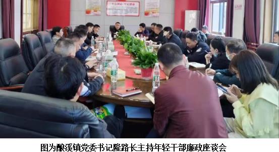新邵酿溪镇始终把年轻干部教育管理监督摆在突出位置,综合运用理想信念教育、警示教育、谈心谈话等方式,对全镇65名35岁及以下年轻干部强化日常监督、做实廉洁教育,不断提升年轻干部的理论素养、党性修养、业务本领和拒腐防变能力,要求年轻干部明方向、立规矩、正风气、强免疫,时刻对党和人民心怀感恩之心,牢固树立正确政绩观、权力观,时刻绷紧纪律规矩这根弦,切实守牢廉洁底线,打造一支忠诚、干净、担当的新时代青年干部队伍。
