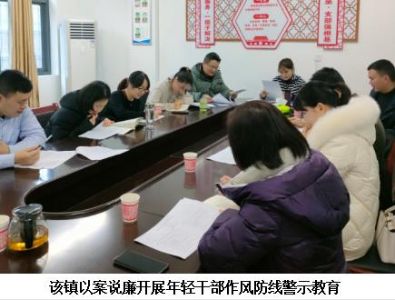 以案说廉,开展警示教育,筑牢年轻干部作风防线。绷紧“纪律弦”,坚持正面引导与反面警示相结合,通过观看警示教育片、开展违法违纪案件专题学习会,用身边的人和事来警示年轻干部。完善机制、强化举措,将廉洁要求贯穿年轻干部日常教育管理监督之中,镇纪委紧盯财务管理、项目建设、惠民政策等资金密集、权力集中的重要岗位,依据岗位特点、性格特征,通过日常监督和提醒谈话等方式,排查梳理年轻干部岗位廉洁风险点,对出现的苗头性倾向性问题咬耳扯袖,抓早抓小、防微杜渐,促使问题早发现、早处置,提升年轻干部廉政风险防范化解能力,争做尊廉、崇廉、守廉的践行者。