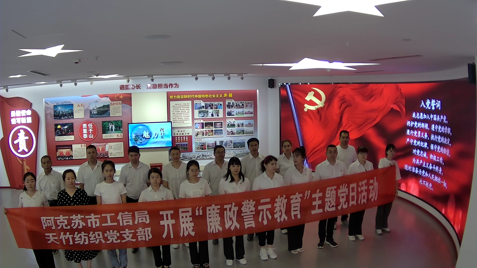 为深入学习贯彻党的二十大精神,切实增强党员干部廉洁自律意识,筑牢拒腐防变的思想防线。7月13日,阿克苏市工业和信息化行业党工委联合天竹纺织有限公司党支部共20余人集体参观地区廉政教育基地,现场接受党性党风党纪教育,教育引导全体党员干部坚定理想信念,补足精神之钙,强化担当意识。