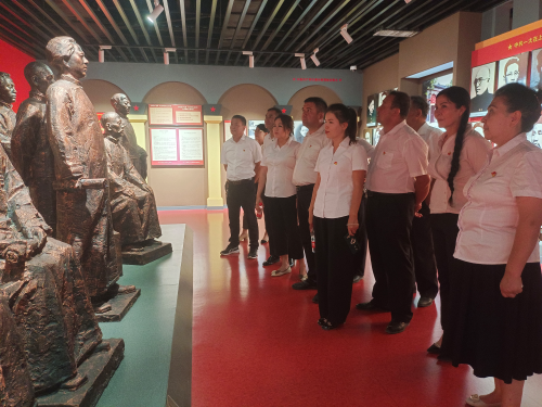 随后,全体党员面对鲜红的党旗,郑重肃立,高举右拳,以集体宣誓的方式重温入党誓词。一句句铿锵有力的誓词,表达着对党的绝对忠诚和为党的事业奋斗终身的决心。