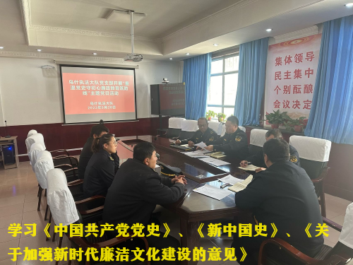 首先乌什执法大队全体干部职工在一楼会议室学习了《中国共产党历史》、《新中国史》、《关于加强新时代廉洁文化建设的意见》及习近平总书记深情讲述“半条被子”的故事,全体党员干部深入了解了党的历史知识,在廉政教育中感悟先辈们的奋斗历程、学习先贤品格,进一步增强遵规守纪、廉洁自律的思想意识和行动自觉,坚定了信仰信念信心,筑牢了拒腐防变思想防线,做到时刻警醒、防微杜渐、警钟长鸣。