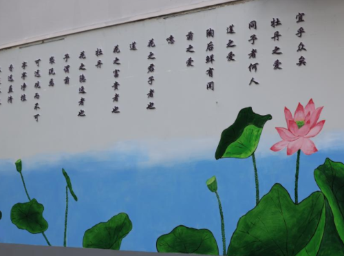 走近掇刀石小学清廉文化长廊,清新、幽雅的廊道墙面布置扑面而来,格外引人注目,令人赏心悦目。学校秉承“一草一木皆教育”的理念,利用校园墙面作为廉洁文化宣传载体,发挥美术教师特长,手绘了梅、兰、竹、菊、莲、松等高风亮节之物,并搭配鱼、水、笋、山等增加画面的灵动性,配以圣贤名篇《爱莲说》和“建清廉学校,扬清风正气,育品正学生”的醒目图片、文字,精心打造“廉洁文化墙”,立志让“墙壁说话”,让“角落启智”,让清廉文化对学生起到耳濡目染的作用,一幅幅精美的墙画不仅美化了环境,而且把清正、廉洁的精髓融入于校园文化之中,成为学校深化清廉建设的一道亮丽风景!