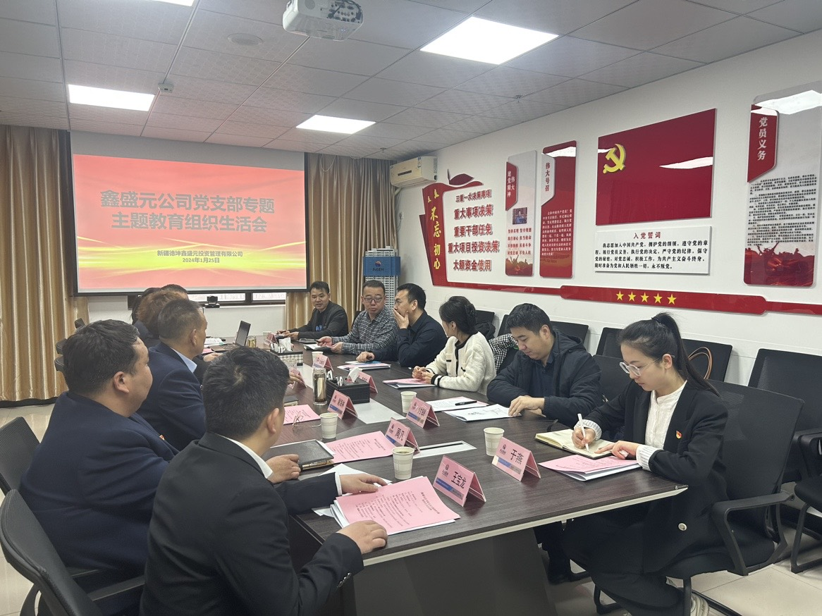 根据集团党委《关于兵团建材(集团)基层党组织召开专题组织生活会和民主评议党员的通知》(集团党委[2024]1号)的工作要求,1月25日,鑫盛元公司召开了主题教育专题组织生活会。鑫盛元公司党支部书记、董事长邬欣娱主持会议。参加此次组织生活会的领导有兵团主题教育第九巡回督导组成员、兵团应急管理局办公室(政策法规处)主任(处长)王新天,兵团主题教育第九巡回督导组成员、兵团生态环境第一监测站工程师黄晓宇,师主题教育办公室成员、师信访局二级主任科员付锐,集团党委委员、董事马龙、党委组织部(人力资源部)马全超、集团纪委办公室于燕。