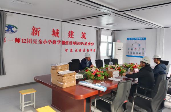 (图为水利水电公司党委委员、纪委书记曹连波对十二团惠民工程“完全小学”安全生产监督检查的工作场景。冯博 摄)